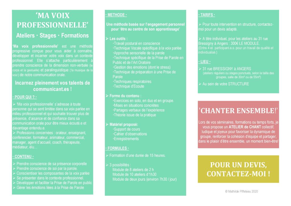 La VOIX en milieu professionnel 2021/2022 La VOIX en milieu professionnel se décline sous trois formes: MA VOIX PRO CHANTER ENSEMBLE COACHING VOCAL BULLETIN D’INSCRIPTION BULLETIN D’INSCRIPTION La voix en milieu professionnel 2020
